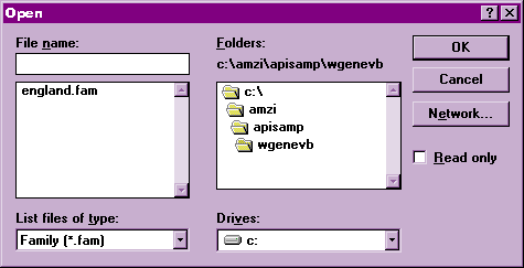 Once a family database has been loaded, WGENEVB needs to fill in the three lists on the main form (see screen shot 2):