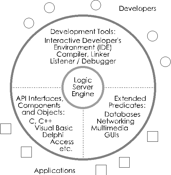 But the real potential of Amzi! is realized in the Logic Server. This is the piece that makes it easy to integrate Prolog rule-based components with conventional programming languages, databases and other development tools and libraries, such as GUI or networking tools.