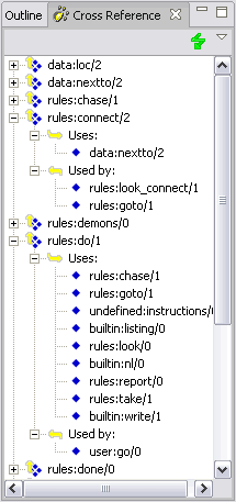 The Cross Reference View is, by default, on the right of the Prolog Perspective in the IDE under the Outline View.